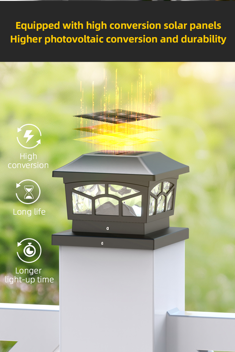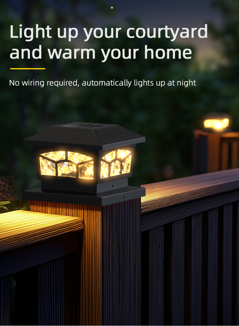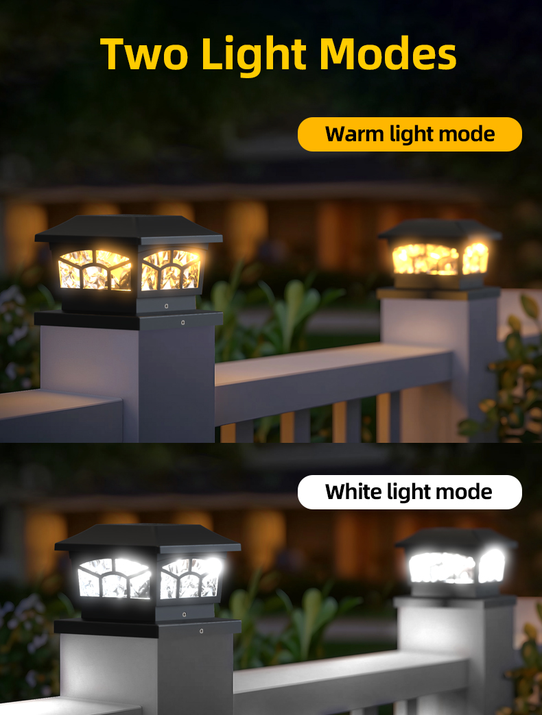 Zobraziť scény z našich 8 vonkajších vodotesných svetiel LED Solar Post Cap Light: